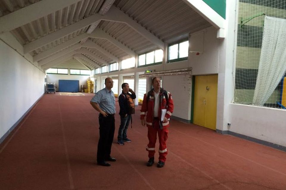 Gegen Freitag Mittag stand auch fest, dass es sich nicht um eine, sondern um drei Unterkünfte, sowie ein Objekt zur Erstregistrierung handeln würde. Die Feuerwehr hatte das Bürgermeister Pohl Haus in Wixhausen, die Sporthalle in der Alsfelder Strasse, sowie die Hirtengrundhalle in Eberstadt festgelegt. Direkt nach der Mitteilung der Objekte trafen sich der Zugführer des 1. BtZ und der Einsatzleiter der Berufsfeuerwehr in der Alsfelder um den genauen Aufbau in der Halle festzulegen. Das notwendige Material und Personal wurde über den DRK Einsatzstab angefordert. Bis 22 Uhr wurden in der Halle ein Bereich zur Sanitätsversorgung, ein Arztzimmer, Logistik, Baby-Wickelraum, Duschbereiche, Toiletten und natürlich die Wohnbereiche ausgerüstet und gekennzeichnet.