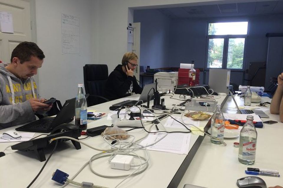 Neben dem Aufbau der Unterkunft kümmerte sich der DRK Einsatzstab um die Einteilung des Personals und klärte offene Fragen. Ein wichtiges Thema hierbei war die Registrierung der Flüchtlinge. Für die Registrierung von Betroffenen gibt es zwar Vordrucke die im Bereich des Katastrophenschutzes zum Einsatz kommen, diese treffen in der aktuellen Lage allerdings nur bedingt zu.