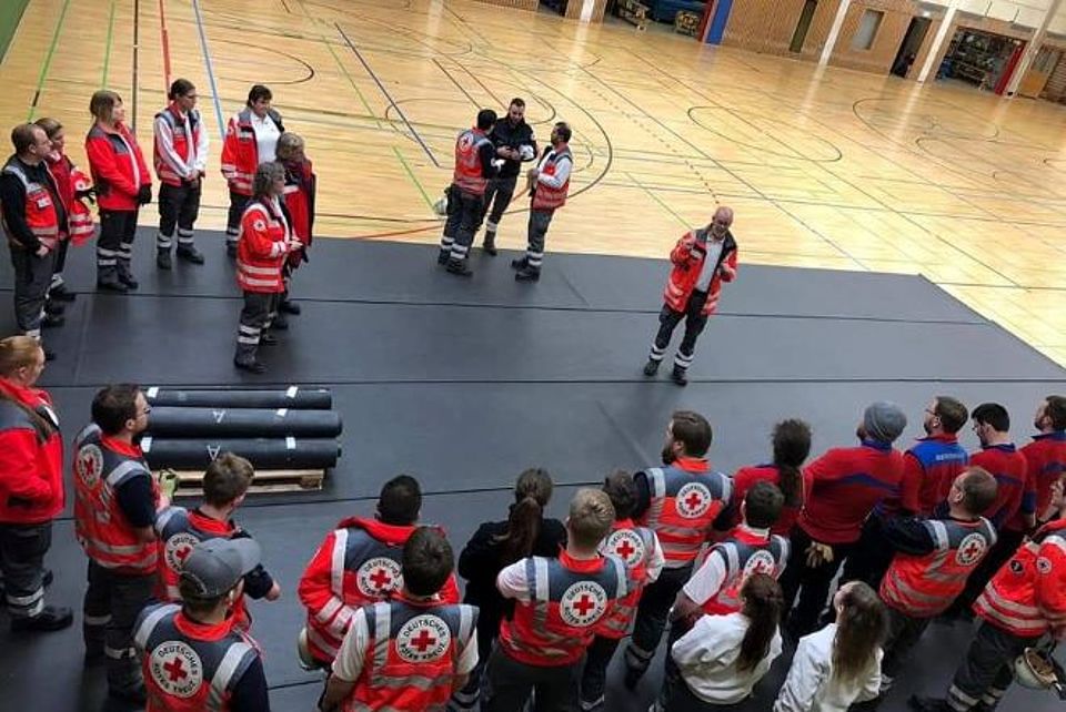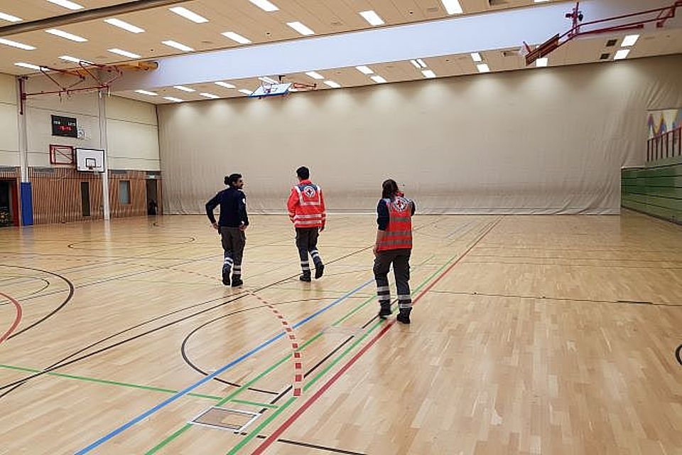 In der Kasinohalle ist derweil der 2. Betreuungszug in der Betreuungsstelle Kasinostraße im Einsatz.