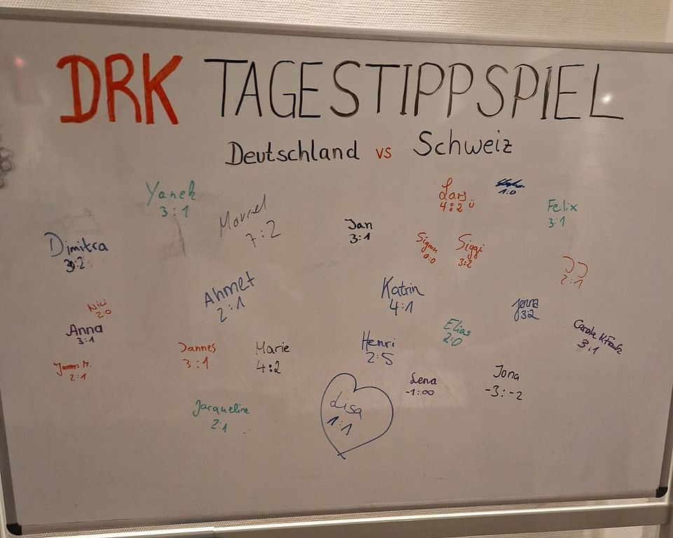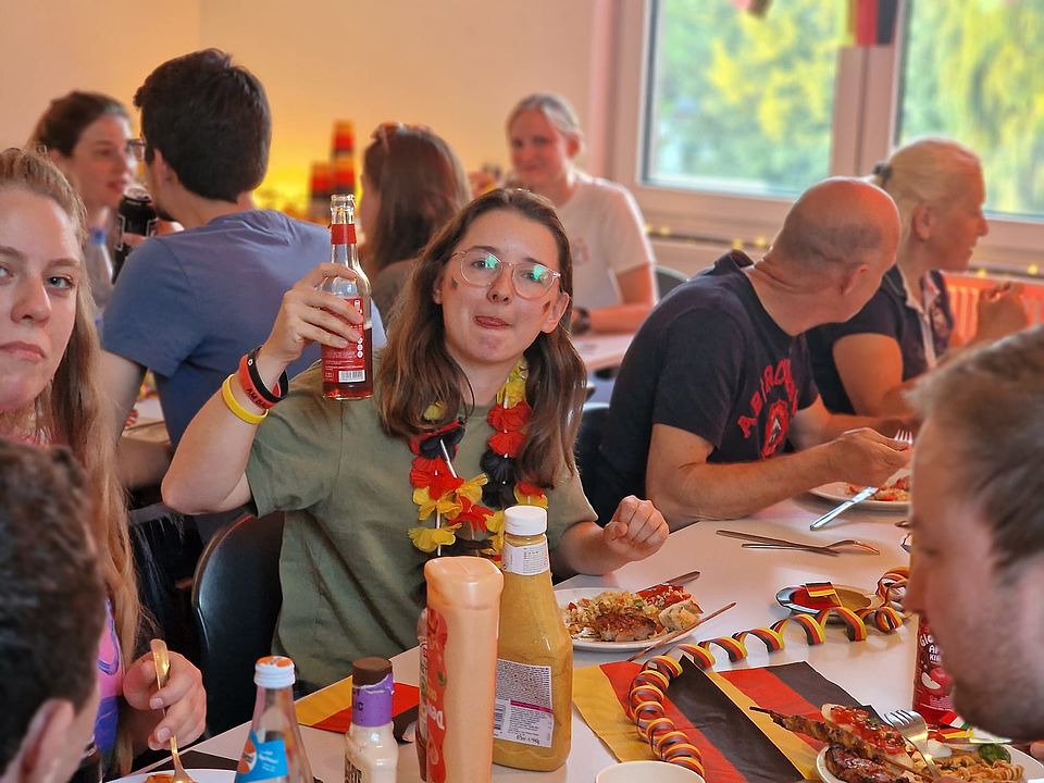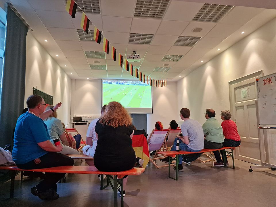 Am gestrigen Sonntag, den 23.06.2024 veranstaltete der DRK Ortsverein Darmstadt-Mitte ein "Public Viewing" des EM-Spiels Deutschland gegen die Schweiz für alle interessierten Einsatzkräfte. Mit 26 Einsatzkräften und einigen Familienangehörigen verbrachten wir einen gelungenen Abend in geselliger Runde.