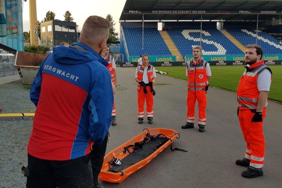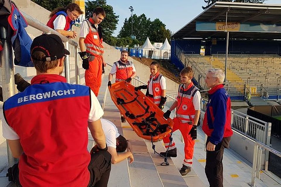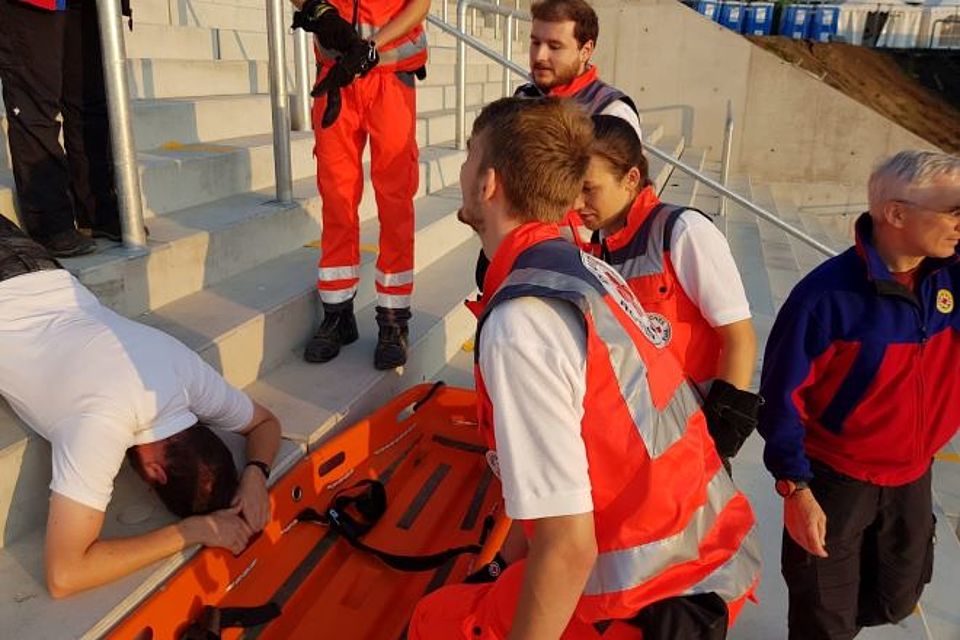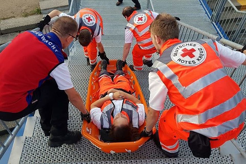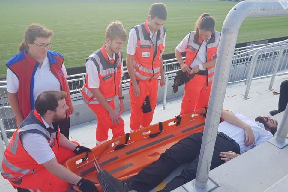 Bei Fußballspielen sind Notfälle in den von Fans überfüllten Tribünen keine Seltenheit. Ist der Patient dabei nicht in der Lage, die Tribüne selbstständig fußläufig zu verlassen, muss dieser liegend abtransportiert werden. Dies stellt oft eine Herausforderung dar, da die Unfallstelle nicht direkt mit einem RTW erreicht werden kann und die Rettungskräfte auf sehr beengtem Raum arbeiten müssen. In solchen Fällen muss jeder Handgriff perfekt sitzen, die Zusammenarbeit im Team optimal funktionieren und die Tragetechnik bestmöglich durchgeführt werden.